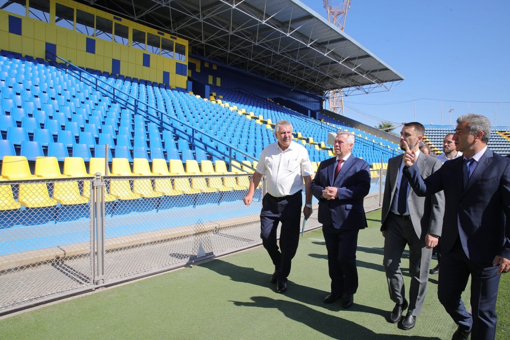 Губернатор РО Василий Голубев, заместитель Губернатора Артем Хохлов и министр по физической культуре и спорту РО Самвел Аракелян ознакомились с результатами ремонта стадиона «Олимп» имени Виктора Понедельника».
