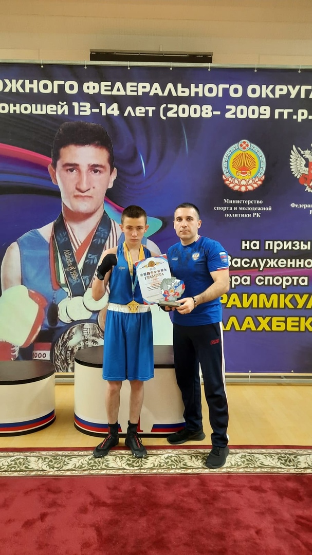 Спортсмен готовится к первенству России. Первенство Южного федерального округа по боксу среди юношей 13-14 лет (2008-2009г.р.) прошло с 25 по 30 апреля в городе Элиста республики Калмыкия.