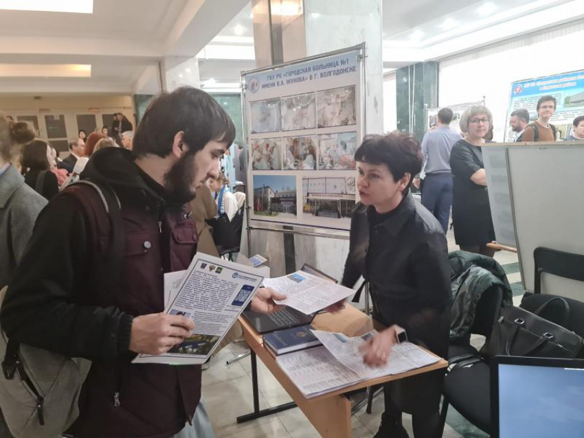 Для привлечения молодых медиков в Городскую больницу №1 имени Виктора Жукова главный врач медучреждения Владимир Бачинский и начальник отдела кадров приняли участие в Ярмарке вакансий в РостГМУ.