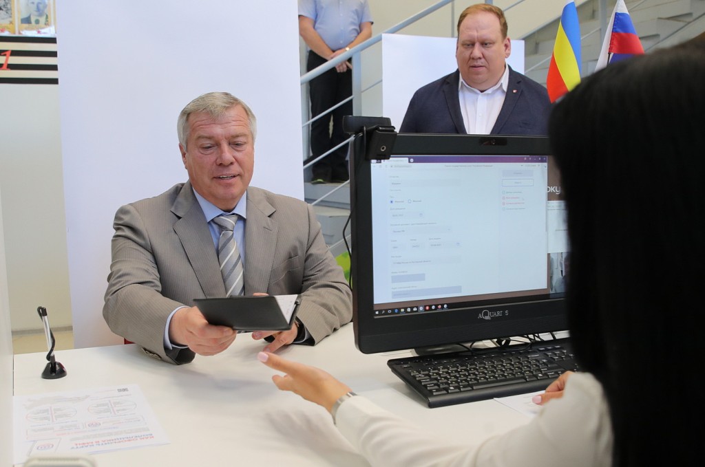 Сегодня, 7 июля, губернатор Ростовской области Василий Голубев побывал в одном из ростовских МФЦ, где организована выдача «паспортов болельщика».