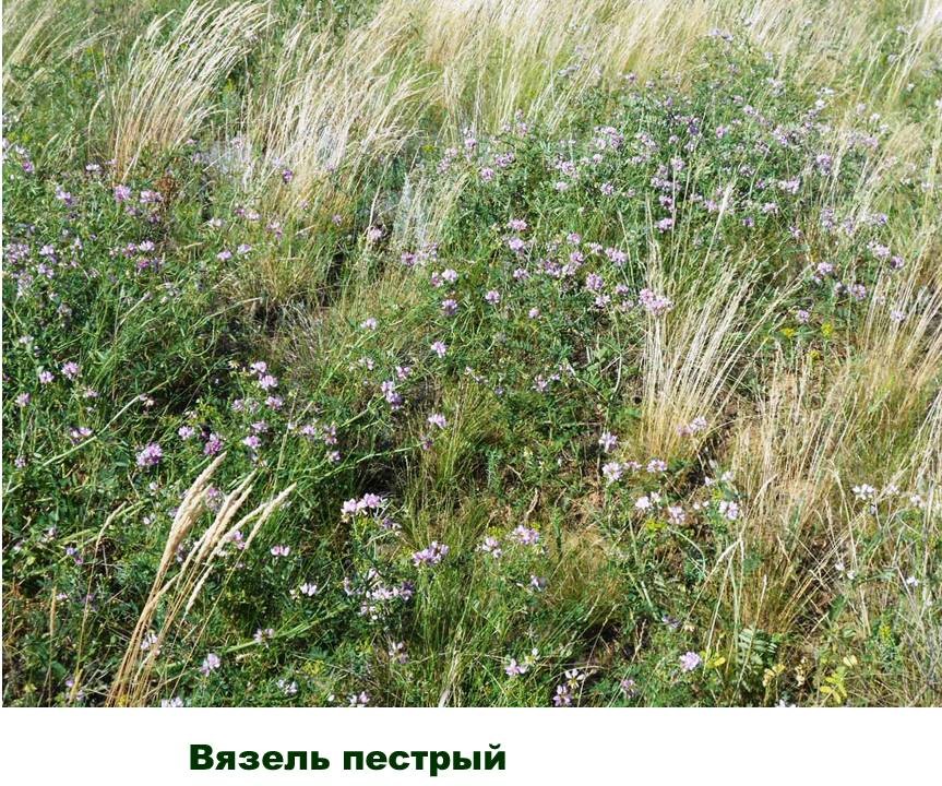 Наша заповедная донская степь уже подготовилась к этому торжеству. Буйствуют травы. Красиво смотрятся на фоне низких зарослей тысячелистника и ярко желтого зверобоя изящные фиолетовые стебли шалфея сухостепного. Среди пышной зелени алеет мачок сомнительный. Часто встречаются девясил британский и зопник клубненосный, донник лекарственный. Яркие: фиолетовые, розовые, белые коровяки уже начинают отцветать. Их сменяют большие куртины горошка мышиного и вязеля пестрого. Обильно цветет, источая яркий аромат чабрец Маршалла.