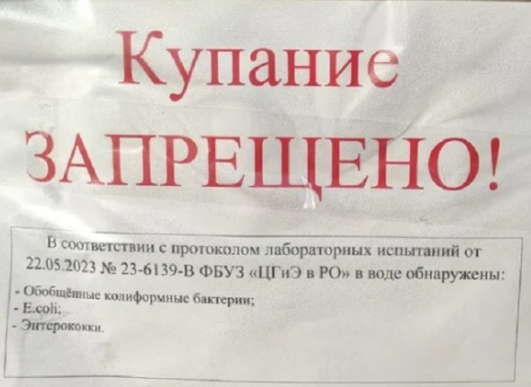 Причина - обнаружение в воде сразу нескольких видов опасных болезнетворных бактерий: энтерококки, кишечная палочка и колиформные бактерии. Вроде бы даже сама территория огорожена лентой и висят предупреждающие объявления.