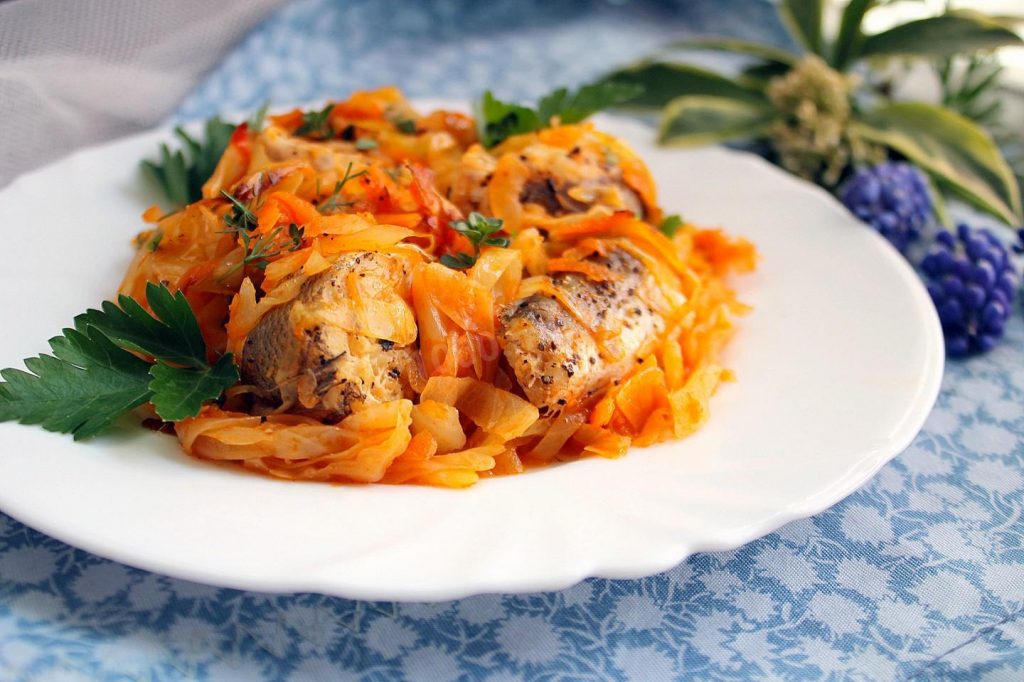 Наше сегодняшнее блюдо мы назвали именно так по двум причинам. Во-первых, это, само собой, капуста, тушенная с треской.