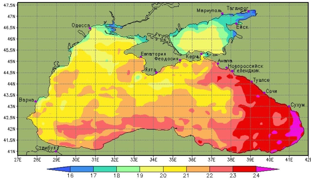 Самая тёплая черноморская вода сегодня не у берегов Турции