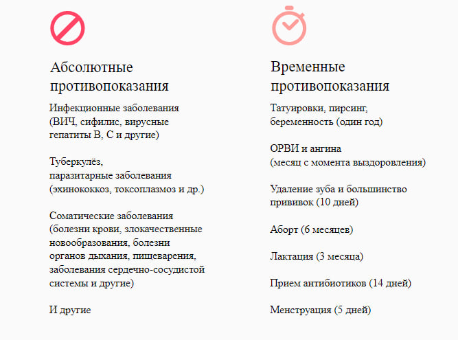 Донором может стать любой гражданин России старше 18 лет, весом более 50 кг, не имеющий проблем со здоровьем или противопоказаний.