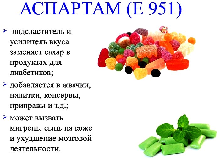 Стоит сказать, что аспартам добавляют в ряд продуктов, среди них жвачки, желатин, готовые сухие завтраки, молочная продукция и газированные напитки - например, диетическая «Кола».