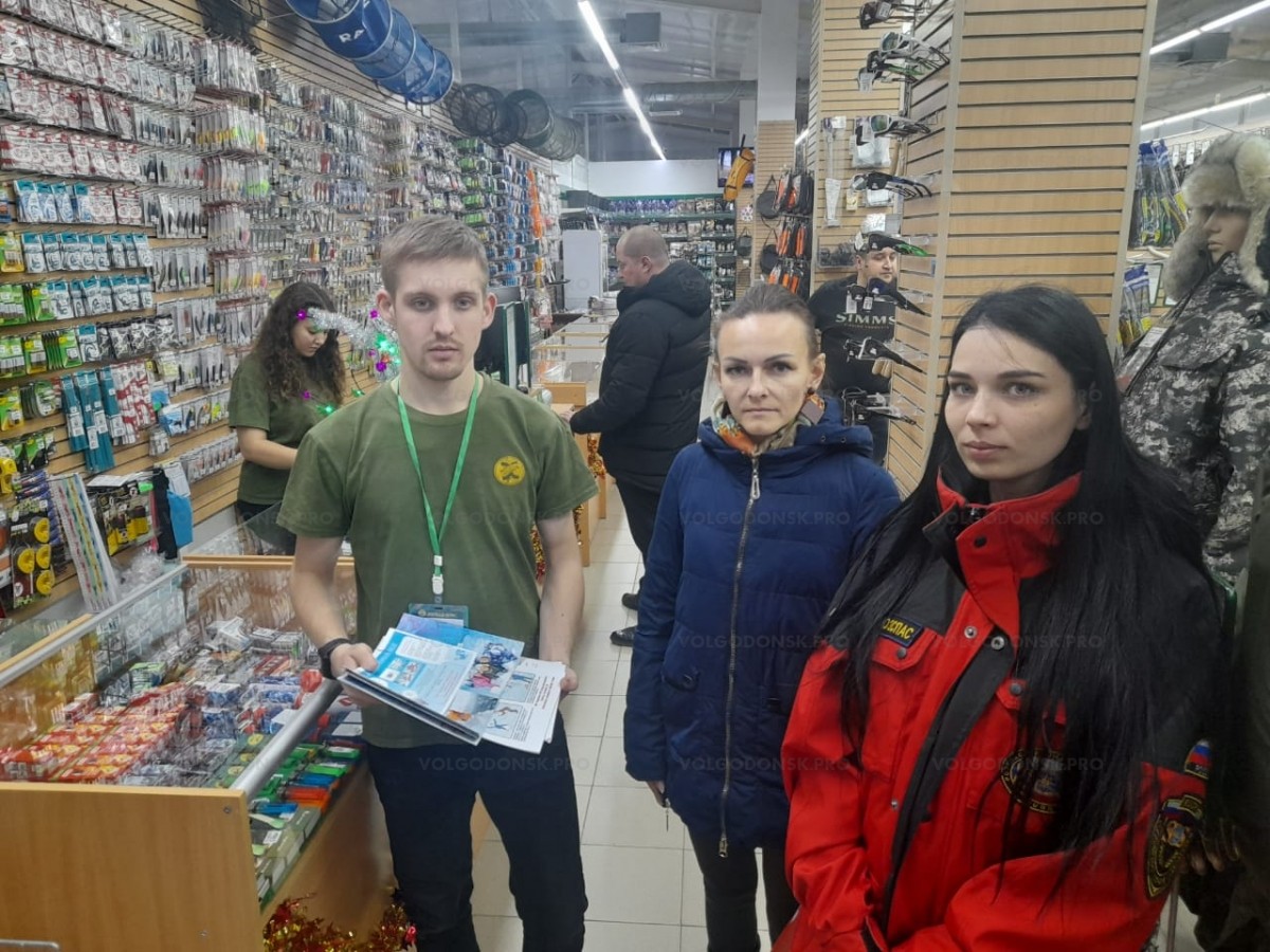 Поскольку любое происшествие лучше предотвратить, чем ликвидировать его последствия, сотрудники управления ГО ЧС Волгодонска совместно со студентами-спасателями СПСО филиала ДГТУ провели профилактический рейд по магазинам города, торгующих рыболовными товарами. Сотрудникам предприятий вручали памятки для рыбаков, как вести себя на льду, а также их разместили в витринах магазинов. Экстренные службы надеются, что любители зимней рыбалки будут соблюдать осторожность.
