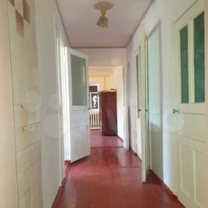 Одноэтажный дом площадью 77.35 кв.м, жилых комнат- 4 (1 гостиная и 3 спальни), санузел совмещенный, за домом находятся 2 кирпичных сарая, дом расположен в конце усадьбы.