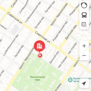 Напротив медицинское училище, детская поликлиника, все городские больницы.